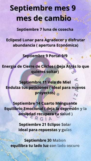 Energía Canalizada ha identificado seis tipos de rituales o actos energéticos, distribuidos a lo largo del año. Cada uno se manifiesta mes a mes, representando una intención, una conexión y una oportunidad para: